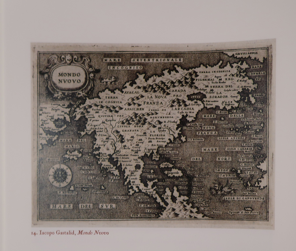Empecemos por Europa, ibas navegando hacía el oriente y cuando dabas la vuelta al globo, que ya se sabía que era redondo, estaba Asia unida a América. Sin solución de continuidad. Eso está representado en una edición de 1548, pero llegamos a 1559 y un veneciano, en su obra de la navegación, saca un nuevo escrito de Marco Polo que no se conocía, de la que se conserva un manuscrito, el más antiguo que está en Toledo.