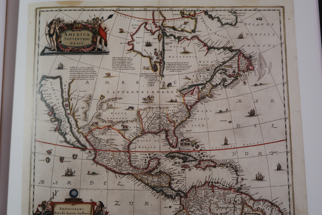¿Cómo es posible que esté representada El Acto de las Aleutianas? ¿De dónde salió esta cartografía? Nadie lo sabe. Esta edición estuvo prohibida porque decían que se criticaba lo que había mandado hacer Calos I en México. Los investigadores creen que se prohibió por este mapa, que es una representación donde se podía medir. “Una persona experimentada en la navegación podía tener una idea de cómo era realmente el territorio. Es un mapa muy pequeño, representa todo el conocimiento que había en ese momento. Estuvo secuestrada durante muchos años”, analiza José Luis Sanz.