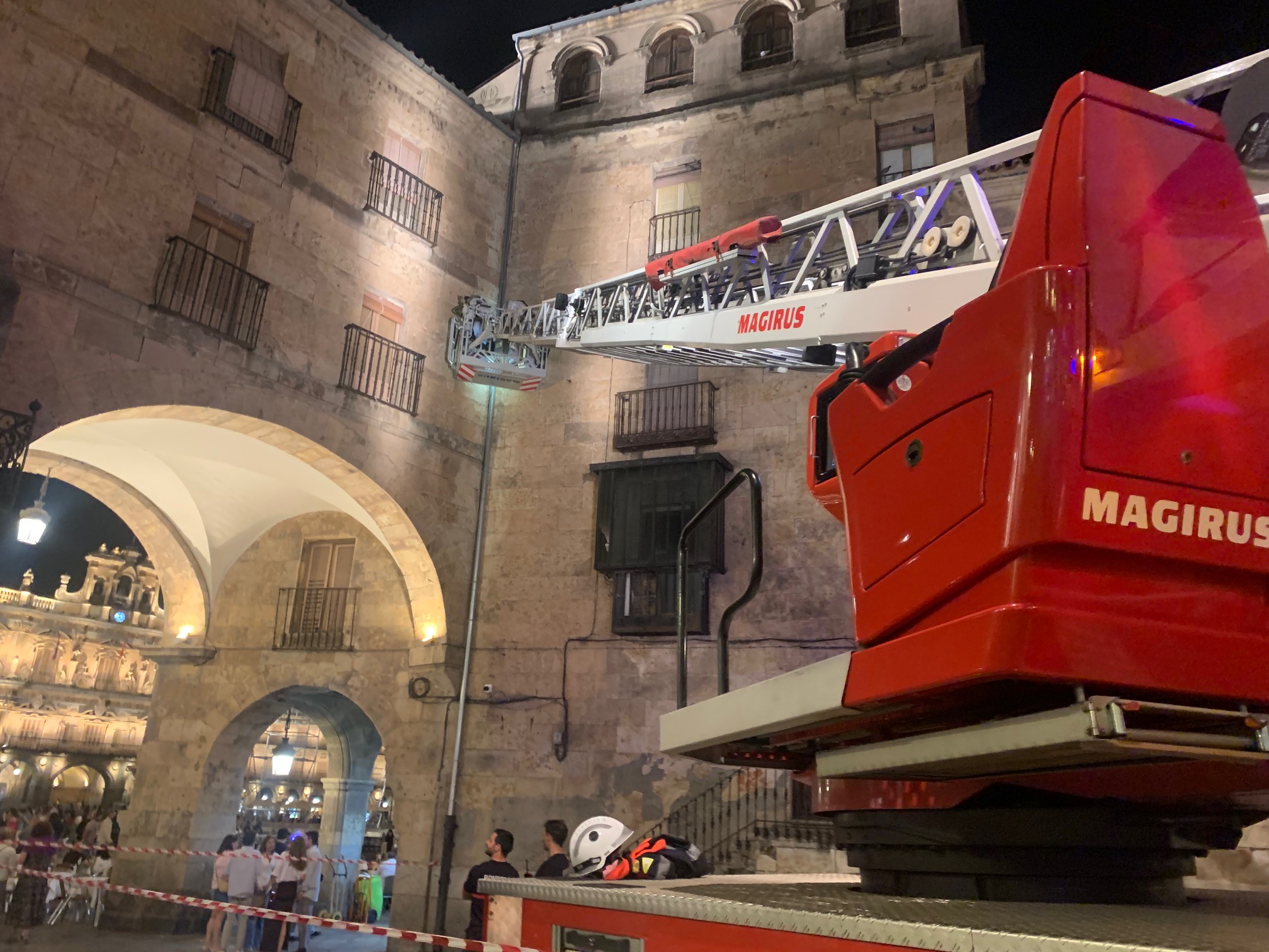 Rozando la medianoche de este sábado, dos vehículos de los Bomberos acudieron a la plaza del Corrillo -Arco de San Martín- para quitar un enjambre. No era la primera vez que acudían este sábado, pero de día estaban muy alborotadas, incluso utilizando el humo, y no consiguieron capturarlas.