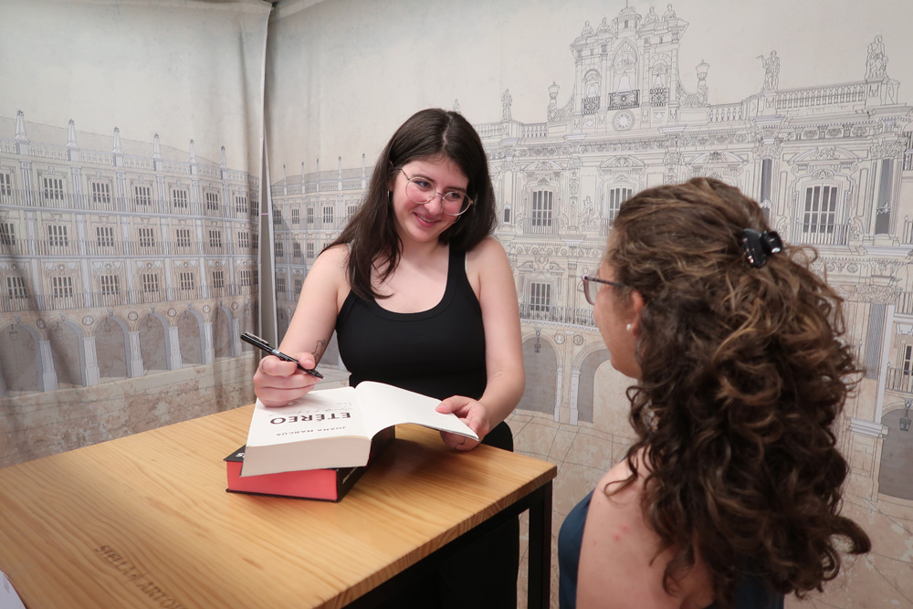 A Joana Marcús, sus lectoras le transmiten que se emocionan con los personajes, lo viven con mucha más intensidad y eso se lo cuentan a la autora los minutos que están junto a ellas, mientras le firma los libros. Siempre hay un momento para hacer un pequeño vídeo y quedar inmortalizadas en una fotografía.