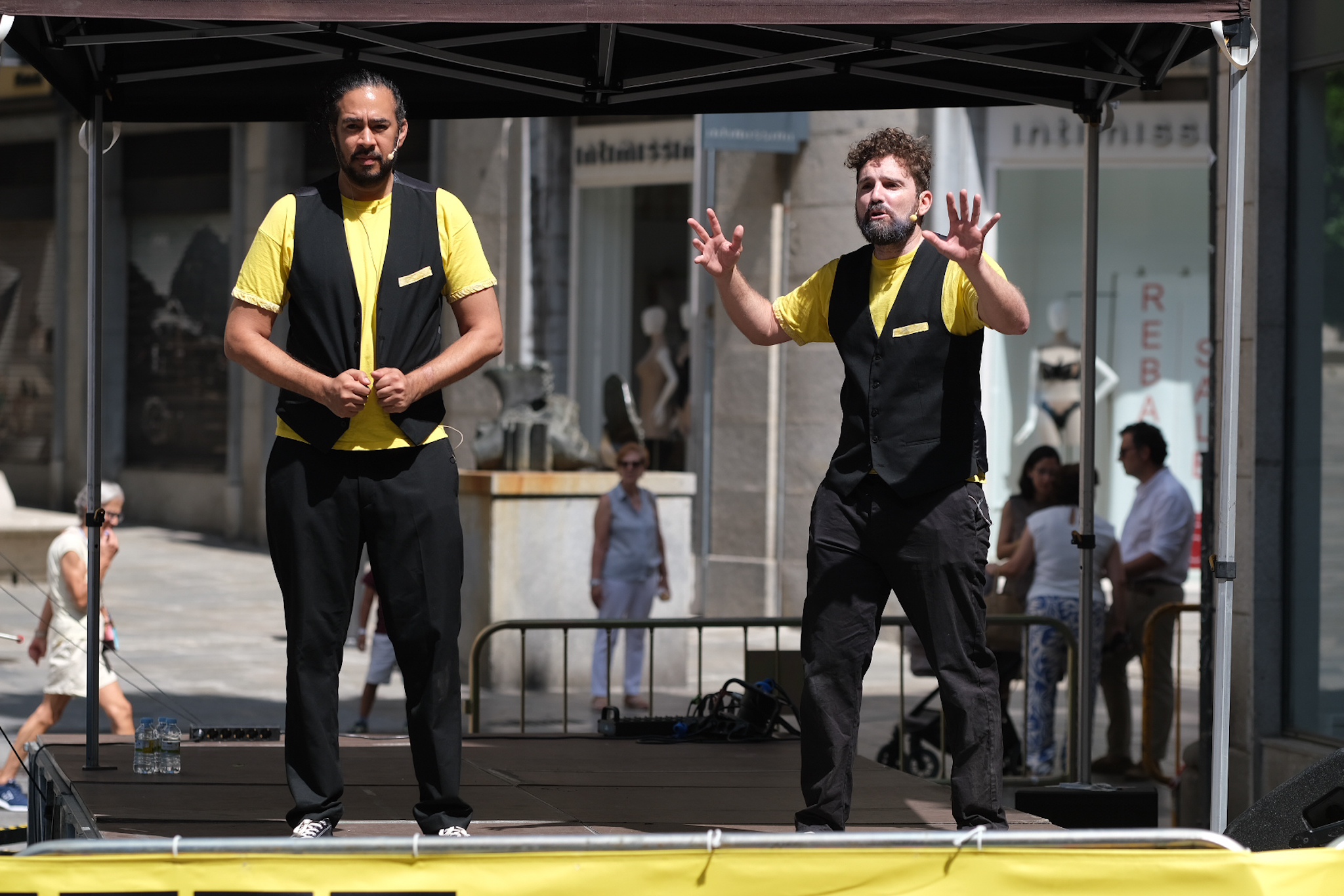 El teatro y las artes escénicas han ocupado diferentes espacios, con propuestas diferenciadas como las de Bath-Flop en la plaza de Anaya, el espectáculo de teatro improvisado de Impro Impar Show en el Escenario Liceo, El Percusionista y El cazador de imágenes en el Teatro Liceo, el teatro-concierto de Exploding Plastic Inevitable en el Teatro Juan del Enzina o estrenos de producción propia, como ‘La Estación’, que ha ofrecido una veintena de pases en palacio San Boal, una de las grandes apuestas del Festival, que ha contado con la participación de Imaginart Teatro Videomapping, Claryartides, Eass Salamanca, Popy Vegas Teatro, Victoria Pole Dance y el IES Vega del Prado de Valladolid. La danza ha estado presente desde el espectáculo inaugural aéreo, con ‘Euforia’, de la compañía Sacude, que disfrutaron miles de personas en la plaza Mayor, y con la Gala de la Escuela de Danza en el Teatro Liceo.