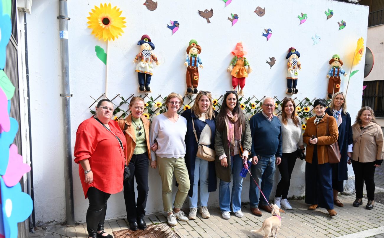 El segundo premio (275 euros) es para la zona de Valera, con 58 puntos, por su instalación ‘La magia de los girasoles y espantapájaros’, elaborado por 5 empresas y 22 vecinos. Su propuesta incluye un mural a modo de photocall y elementos como molinillos de papel, flores, pájaros…