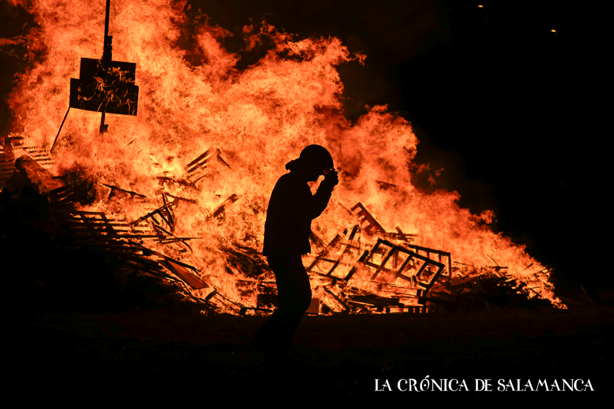 Este año, la lluvia casi casi arruina la hoguera. Justo cuando las llamas estaban en lo alto, comenzó a llover con ganas, por lo que el público asistente tuvo que refugiarse del chaparrón.
