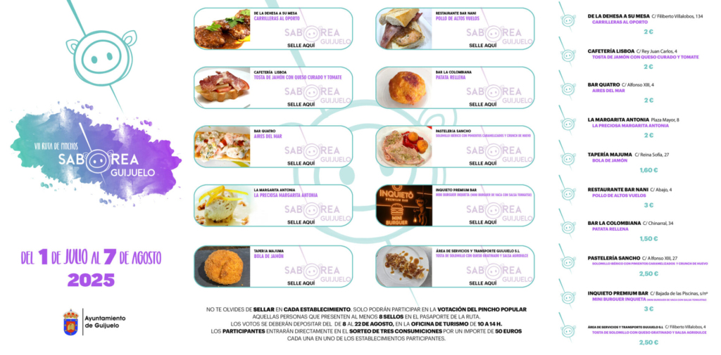El Ayuntamiento de Guijuelo, a través de la concejalía de Hostelería, pone en marcha la VII Ruta de Pinchos ‘Saborea Guijuelo’, del 1 de julio al 7 de agosto.