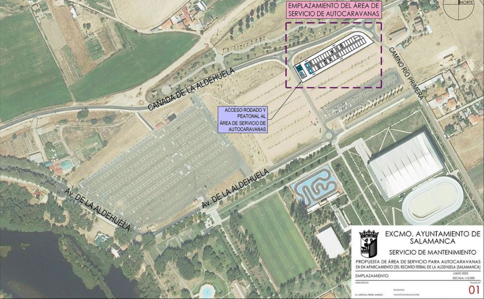 Salamanca contará en 2026 con un área de estacionamiento para autocaravanas y furgonetas camperizadas junto al recinto ferial de La Aldehuela. Concretamente estará ubicado en una parcela de 4.000 metros cuadrados situada en el extremo norte del actual aparcamiento de zahorra entre las calles Cañada de La Aldehuela y Camino Río Primera. El concejal de Fomento del Ayuntamiento de Salamanca, Fernando Carabias, ha presentado hoy el proyecto que era uno de los compromisos electorales del actual equipo de Gobierno municipal que, para variar, se cumple en vísperas de las elecciones.