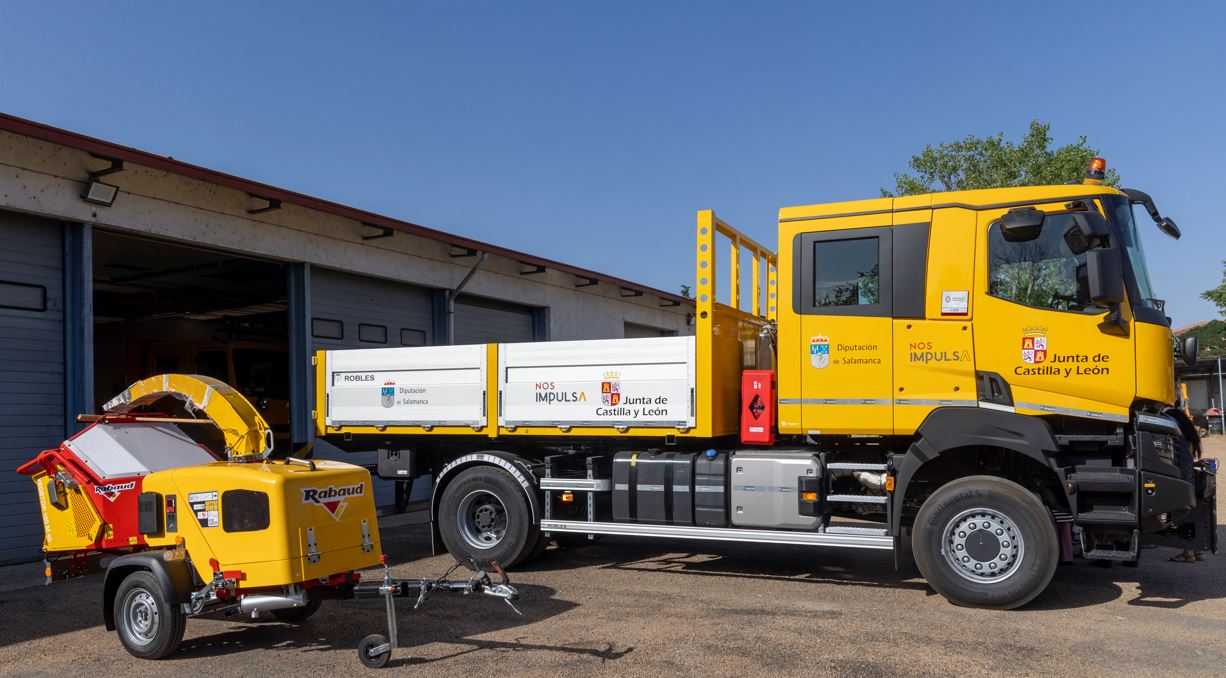 El vehículo adquirido es un camión Renault modelo ‘K’ de dos ejes con doble cabina y tracción ‘4×4’, dotado de un sistema polivalente de carga y equipamiento. Está diseñado para ser utilizado en diversas funciones, incluyendo trabajos forestales, como pala quitanieves, arrastrador de troncos, desbrozadora o podadora. Junto a este vehículo, la Diputación ha adquirido también diversa maquinaria destinada al desarrollo de estas labores, tales como motosierras, desbrozadoras, una biotrituradora para restos vegetales, o vestuario y equipamiento para los trabajadores.