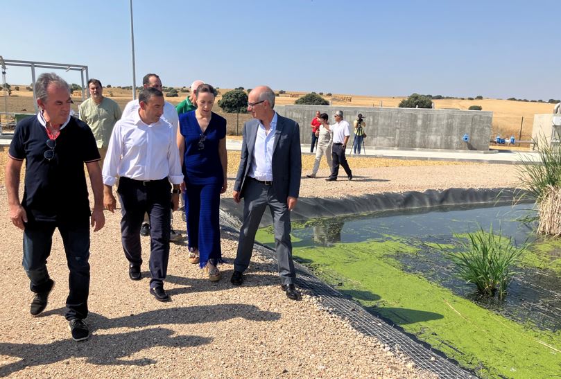 La Edar de Mozárbez recibió este miércoles la visita del delegado territorial de la Junta de Castilla y León en Salamanca, Eloy Ruiz, y del presidente de la Diputación, Javier Iglesias, junto a la diputada de Medio Ambiente, Pilar Sánchez, y el alcalde de la localidad, Fermín Pérez. La obra incluye la ejecución de un colector de 850 metros de longitud para llevar las aguas desde el antiguo punto de vertido hasta la nueva instalación, así como la nueva conexión a la red eléctrica y la instalación de paneles fotovoltaicos para minimizar los costes eléctricos.