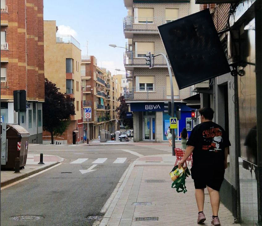 La voz de alarma la da para que no haya lamentaciones. Por ello, pregunta si hay que llamar a los bomberos para que lo arreglen, al Ayuntamiento o a la propia empresa responsable del cartel.