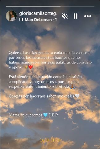 Gloria Camila Ortega Mohedano escribe un emotivo mensaje a su cuñada, Michu, madre de su sobrina Rocío, y da las gracias a los seguidores que se han acordado de ellos en este duro momento.