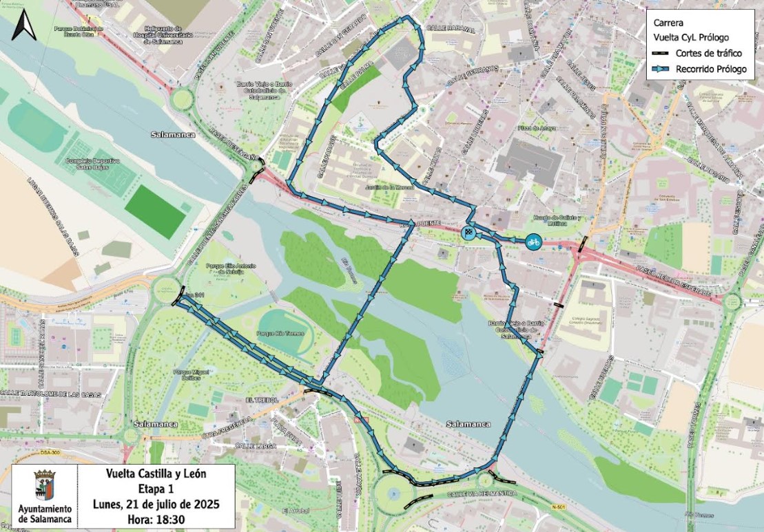 La contrarreloj individual de 3,8 kilómetros que sirve de prólogo de la II Vuelta Ciclista a Castilla y León Sub-23 y Élite provocará este lunes, 21 de julio, cortes de tráfico y desvíos en el sur de la ciudad.