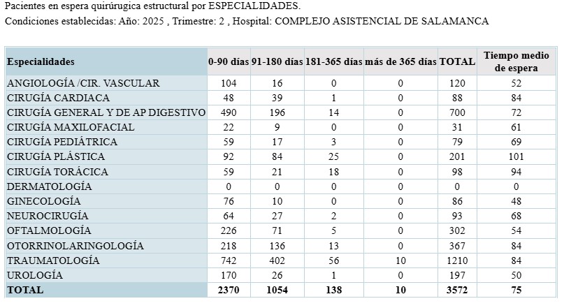 Listas de espera para operarse al 30 de junio en Salamanca: