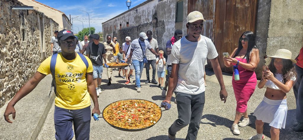 En este sentido el concejal recordó que todos tenemos derecho de decidir libremente cómo queremos vivir. A continuación, el numeroso grupo recorrió las calles y lugares más emblemáticos de Juzbado, deteniéndose en los miradores de la Peña del Castillo, el Museo del a Falla o el último mural colaborativo que se realizó con personas refugiadas hace un mes. Ya en el salón de actos y tras el vermut, se ofreció una paella a todos los asistentes elaborada por el chef Nano y coordinada por Faustino Iglesias. Tino, presidente de la Asociación de Mayores reconoció públicamente la “satisfacción que genera esta acogida que cumple ya su sexta edición”. A lo que añadió “la generosidad mutua que los vecinos de Juzbado y los visitantes demuestran cada año es emocionante, más si cabe en estos momentos de incertidumbre”.