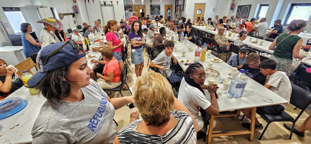 Durante la comida se degustaron, además de la riquísima paella, elaboraciones dulces y saladas de las propias familias participantes. Un momento especial en el que se sucedieron conversaciones de mucho interés en torno a una mesa llena de exóticos platos y que, sin duda, enriquecieron y deleitaron la experiencia de todos los asistentes. Así mismo, Mónica Puente, coordinadora de ACCEM Salamanca agradeció a la los vecinos de Juzbado su acogida y la solidez que tras más de 6 años ha adquirido la propuesta de Juzbado acoge.