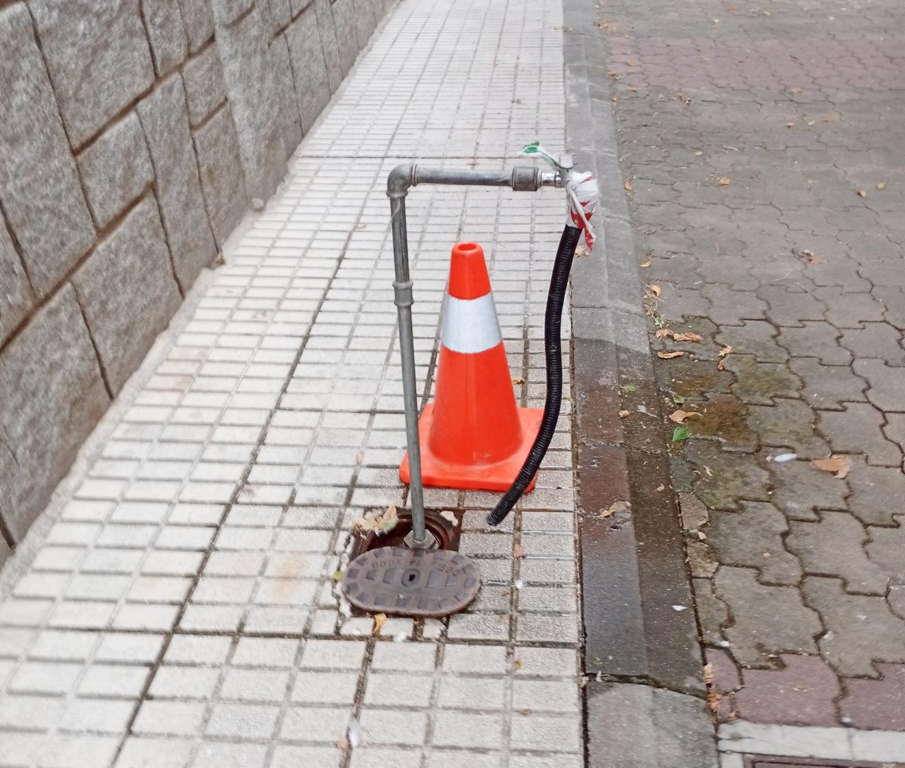 Se trata de la instalación de un grifo en plena vía pública, con la incomodidad que ello supone para los usuarios. Los vecinos están a la espera de que la avería se solvente para volver a tener agua en sus domicilios después del reventón.