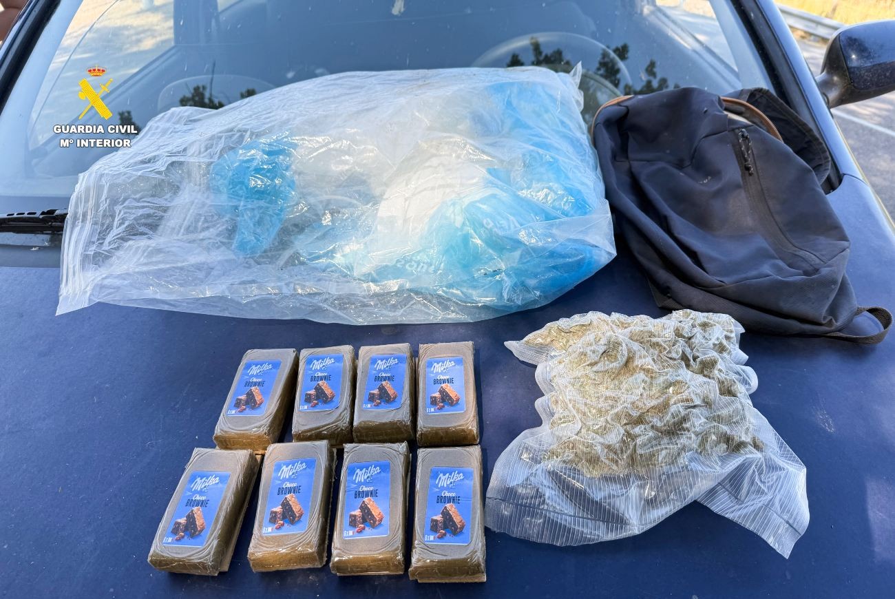 La segunda intervención (16 de julio) ocurrió después de que los efectivos detectaran el comportamiento sospechoso de un conductor. Tras su identificación se confirmó que portaba sustancias ilícitas en su coche. En los asientos traseros, el joven de 20 años guardaba una mochila con ocho paquetes precintados que contenían un total de 784 gramos de polen de hachís, así como una bolsa de envasado al vacío con 270 gramos de marihuana lista para su venta.