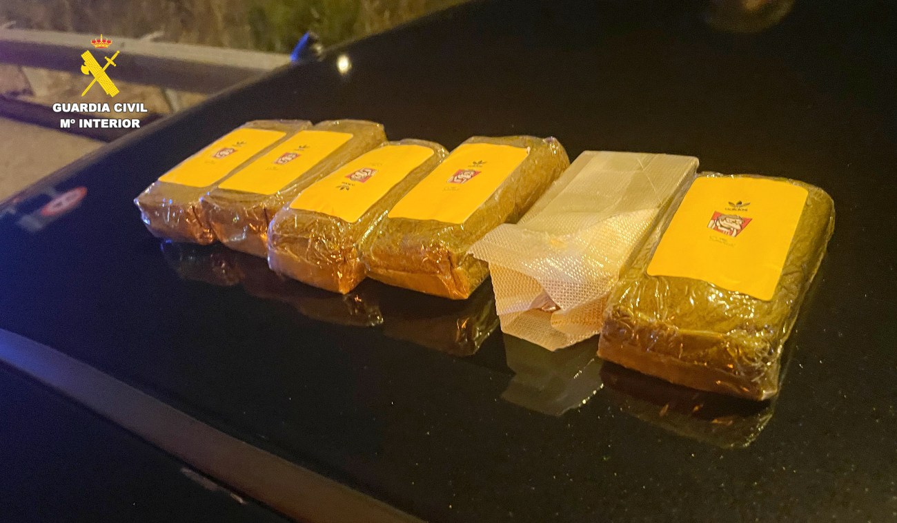 Era una mujer de 36 años que llevaba en el coche seis paquetes compactos y precintados, cinco ocultos entre su ropa y uno más dentro del bolso. Todos ellos eran pastillas de hachís, con un peso total de 590 gramos.