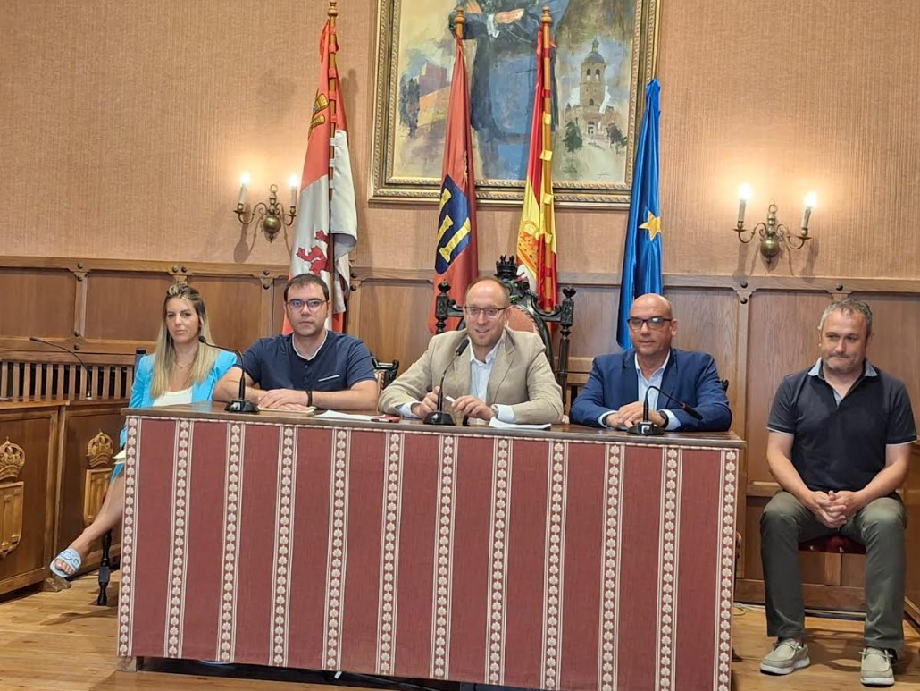 El alcalde, Marcos Iglesias, junto al teniente de alcalde, Ramón Sastre, el delegado de Economía y Hacienda, Rodrigo Toribio, el delegado Policía Local y Sostenibilidad Ambiental, Rubén Benito, y la delegada de comunicación, Joana Veloso, han presentado una Modificación Presupuestaria histórica de 5,8 millones de euros.
