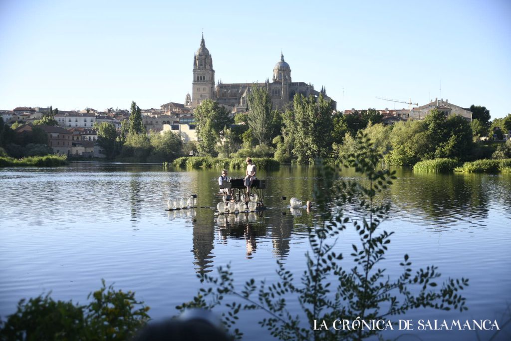 Los salmantinos pudieron disfrutar este viernes de un concierto sobre el agua, con la postal de Salamanca de fondo. Una experiencia que ya nos visitó en el pasado y que regresa generando ese ambiente de placidez estival.