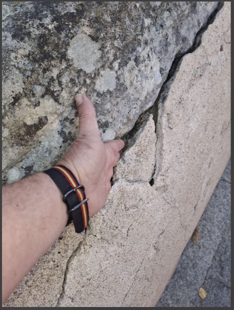 Si los de aquí y los de allí se fijan un poco verán que las grietas entre el revoque y las piedras son cada vez más amplias, incluso se pueden meter ya los dedos de la mano.