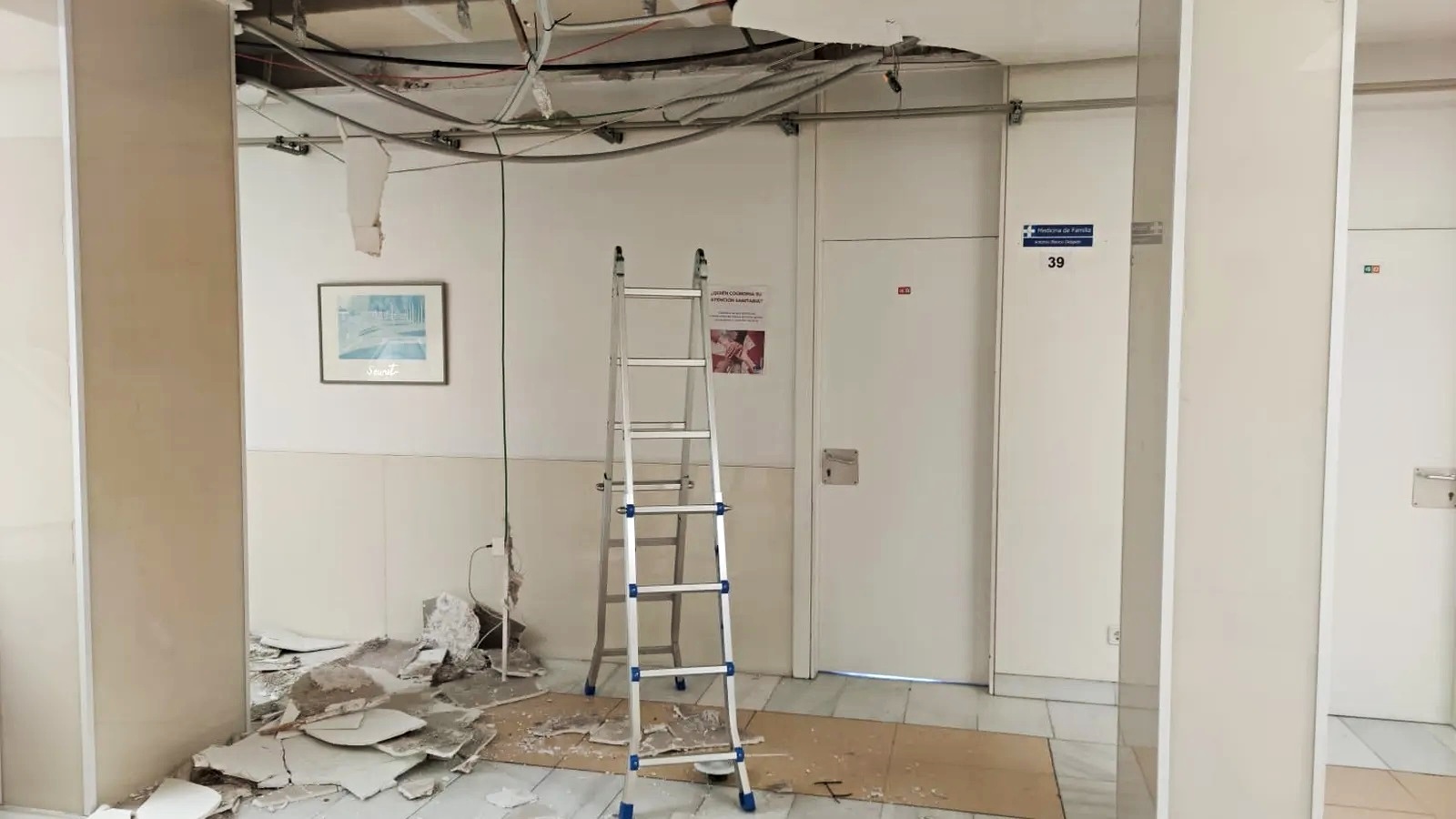“El derrumbe de la techumbre acontecido la semana pasada se dio concretamente en un pasillo junto a una zona de consultas médicas, suceso que afortunadamente ocurrió de madrugada, lo que favoreció que no hubiese daños más allá de los materiales”, explica el partido en un comunicado.