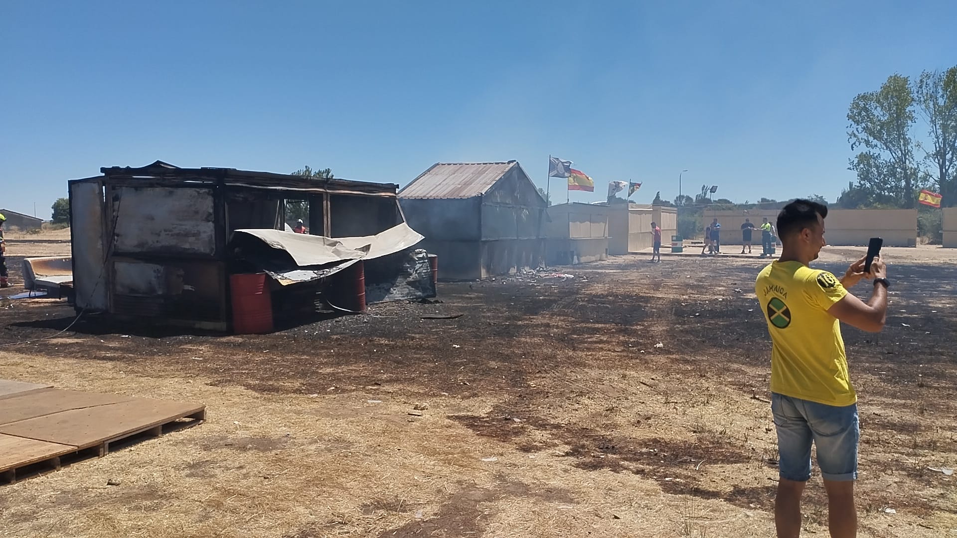 El incendio se produjo en una zona de vegetación segada, avanzó hasta el campamento de las peñas juveniles y afectó a varias casetas colocadas con motivo de las celebraciones de la fiestas patronales en honor de Santa Marta.