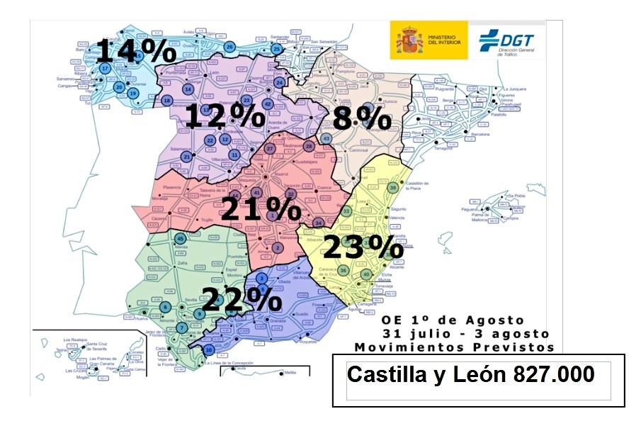La Dirección General de Tráfico (DGT) pone en marcha desde a las 15:00 horas del jueves su ‘Operación Especial 1º de agosto’ con el objetivo de dar cobertura al incremento de viajes en estas fechas. En el caso de Salamanca, se prevén 83.000 desplazamientos por carretera hasta las 24:00 horas del 3 de agosto (827.000 en Castilla y León).