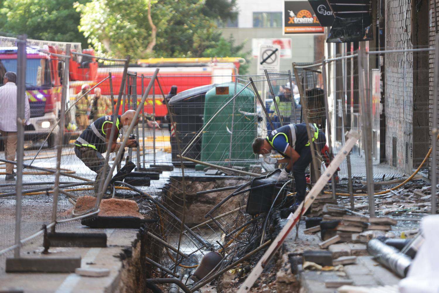 Dos personas resultaron heridas este viernes tras la explosión de la tubería de gas en la calle Regimiento Toledo, en el centro de Zamora. Una de ellas fue trasladada al hospital y fue atendida en el lugar de los hechos al sufrir quemaduras en las piernas.