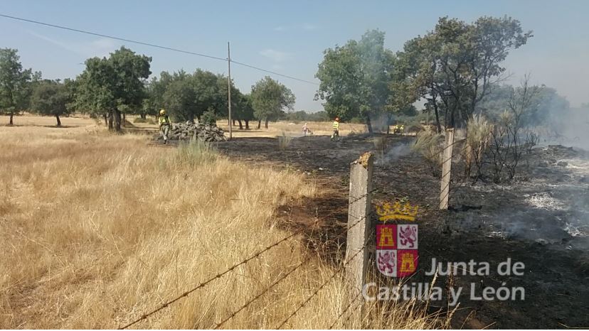 El incendio en el que participaron los agentes de la Guardia Civil estaba próximo al punto kilométrico 54 de la CL-517 a su paso por la localidad de Peralejos de Arriba junto a los equipos de extinción y agentes forestales.