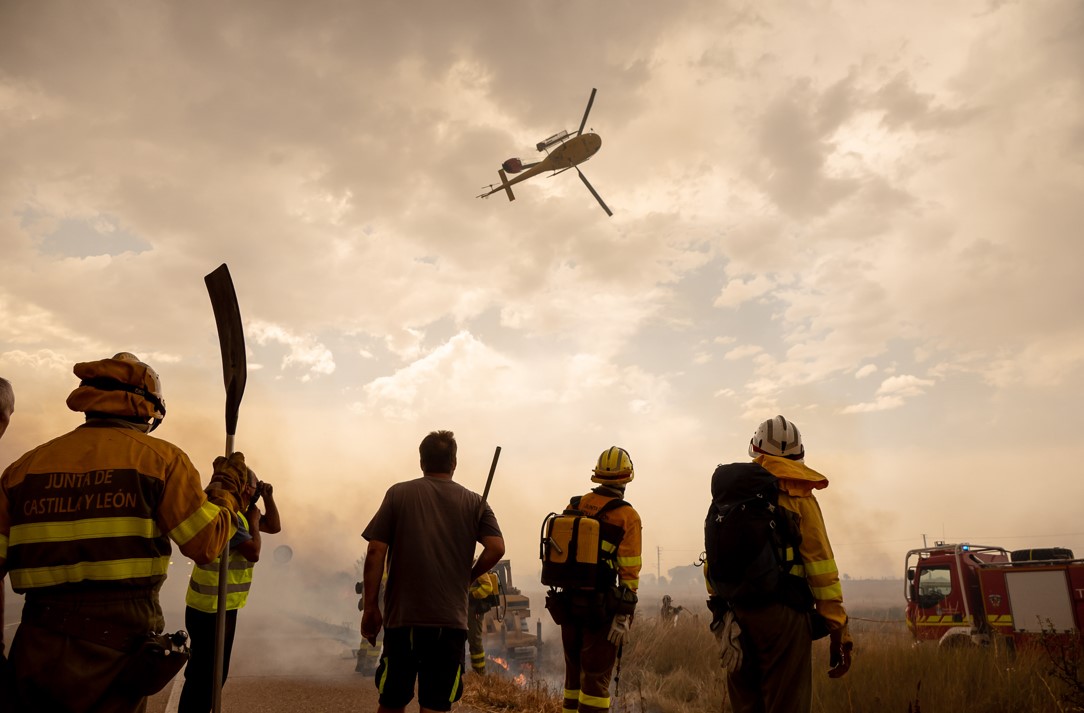 Un helicóptero, seis autobombas, cinco agentes medioambientales, dos brigadas helitransportadas, tres cuadrillas terrestres, un bulldozer y dos técnicos trabajan en la zona, según fuentes del portal Inforcyl consultadas por Ical, que recogen que las causas que originaron el fuego, aún en perimetración, están siendo investigadas.