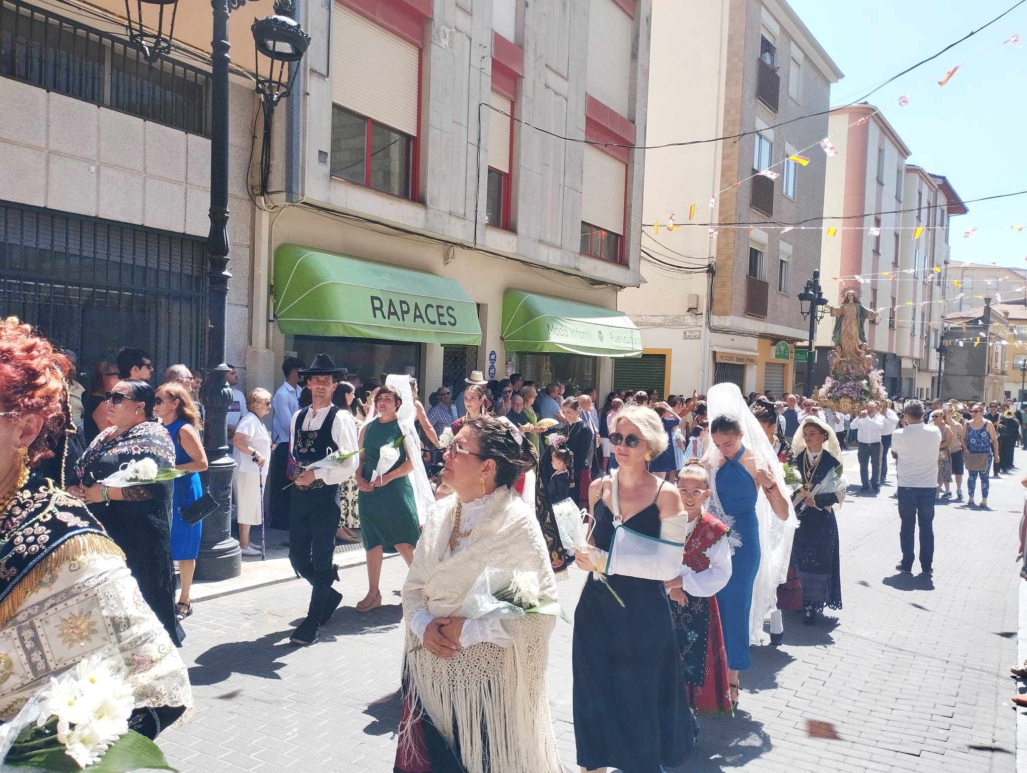 Este viernes, 15 de agosto, los vecinos de la localidad se han vestido de fiesta para procesionar y ofrecer flores a Nuestra Señora de la Asunción.