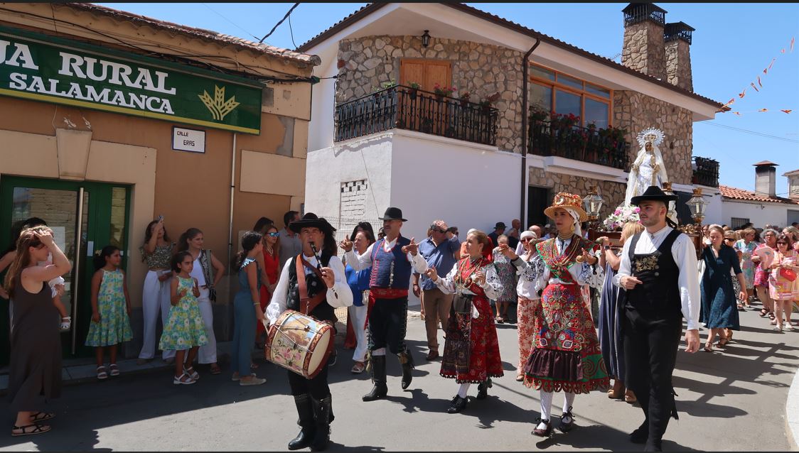 Valdelosa está de fiestas, sus calles adornadas, sus vecinos cansados -porque ya llevan unos días de celebraciones- pero sonrientes -saben que esto no ha hecho nada más que empezar- y todos, grandes y pequeños, vestidos de fiesta para acompañar a Nuestra Señora en procesión.