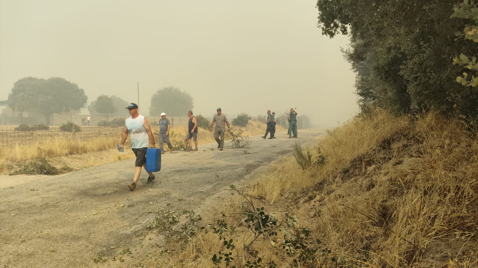 Entre lágrimas porque está viendo como todo a su alrededor está quemado. «La gente de los pueblos nos hemos echado a la calle para hacer lo que podamos. Ha habido un llamamiento y hay tractores, arados… todo el puede está colaborando para apagar el incendio», explica.