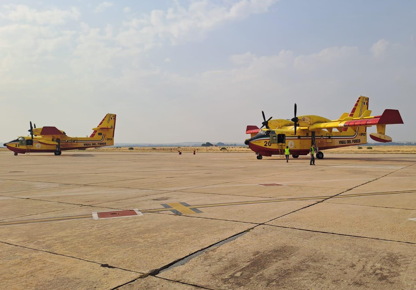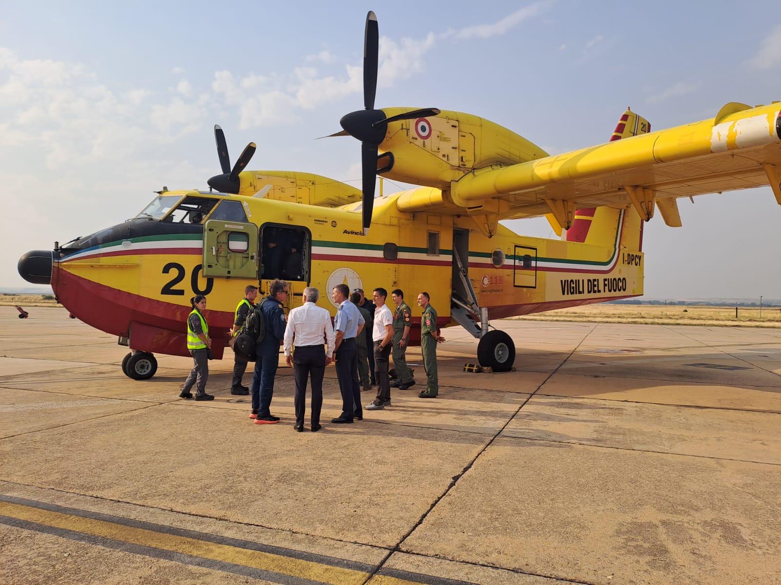 La base aérea salmantina de Matacán recibe este sábado dos nuevos aviones-cisterna italianos, aportados a través del Mecanismo Europeo de Protección Civil que fue activado el lunes por el Ministerio del Interior, para colaborar en la lucha contra los incendios forestales que asolan desde el pasado fin de semana al oeste de España, y en especial a Castilla y León.