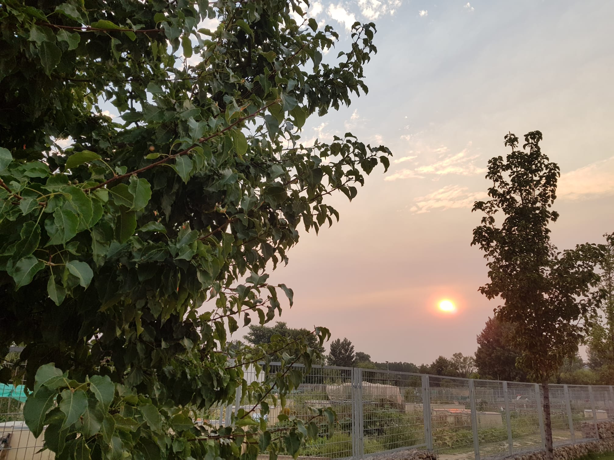 Parece que en el atardecer se ha despejado y empezamos a ver el cielo azul en la vertical, pero si miramos en un ángulo más cerrado, el humo es evidente.