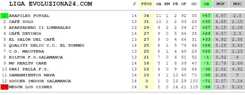 Otra jornada más, otro nuevo líder en la liga Evoluziona24.com, esta vez, Arapiles Futsal.