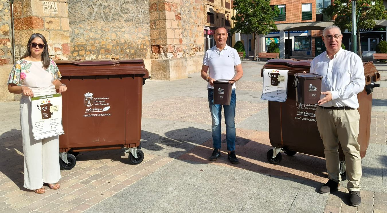 El Ayuntamiento de Carbajosa de la Sagrada ha puesto en marcha pone en marcha la recogida de la fracción orgánica. Este lunes, el alcalde, Pedro Samuel Martín; el concejal de Limpieza, Ángel Manso, y la responsable de la empresa Resuival, Elena María Borrego Pérez, han presentado su campaña conjunta ‘Carbajosa selecciona, la orgánica se aprovecha’. Está previsto iniciar la recogida de la fracción orgánica en el municipio a principios de septiembre.