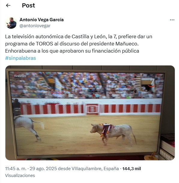 La polémica de la jornada no se centró solo en el debate parlamentario. Mientras medios nacionales retransmitían la comparecencia en directo, la televisión pública de Castilla y León (CyLTV), que recibe 26 millones al año de la Junta, optó por emitir un programa sobre toros y espacios de teletienda.