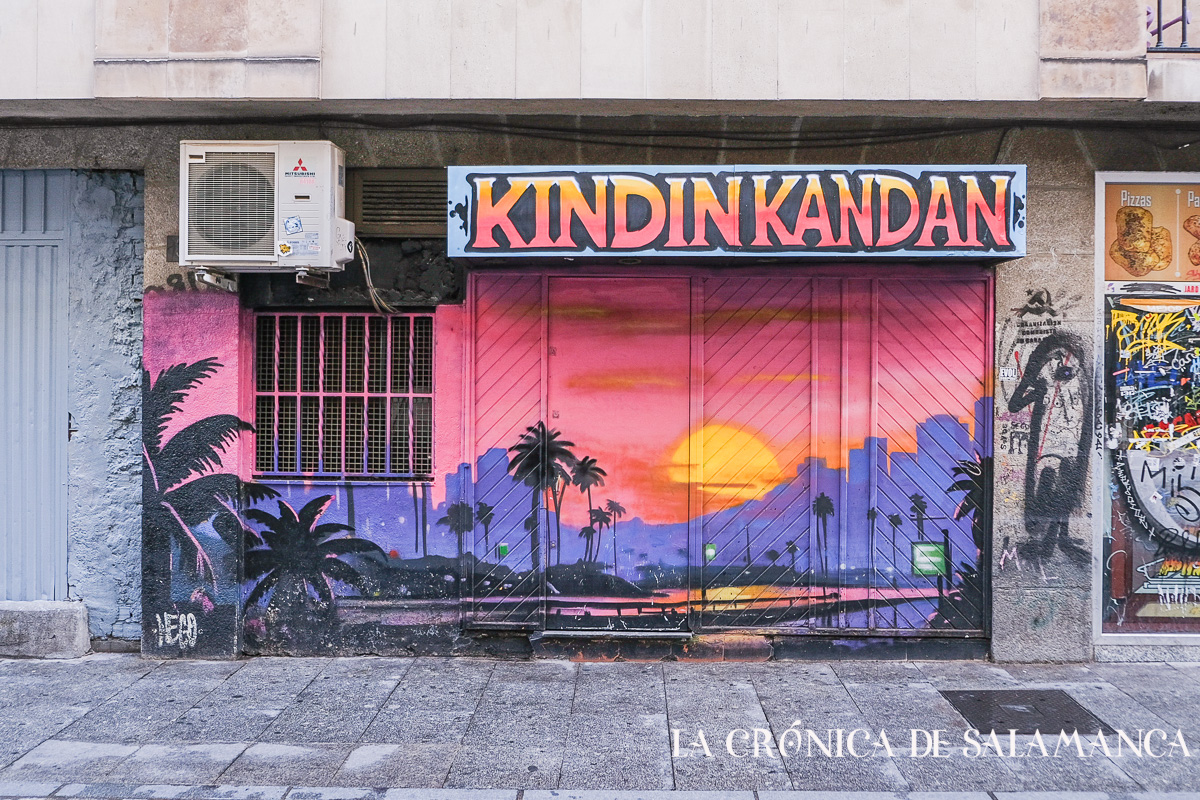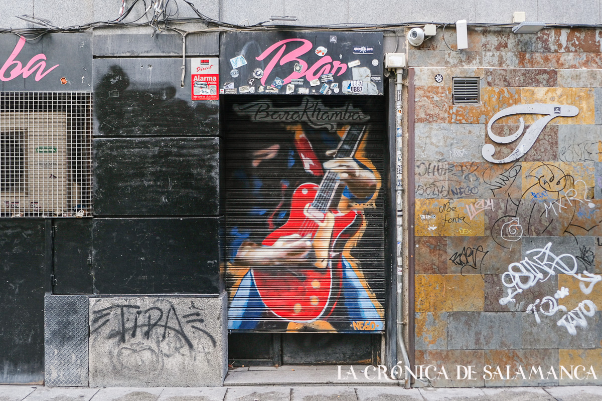 Hablemos del ahora. Salamanca vuelve a apostar por la cultura en sus bares, en este caso, los dueños de los establecimientos de la zona de Varillas son generoso. No hay que traspasar el umbral para disfrutar del arte. Han decidido que las puertas, trapas y paredes de sus locales sean una galería de arte urbano para todos los que caminan por la calle Varillas, Consuelo, plaza de San Justo o la misma Gran Vía –la calle que logró que sus bares fuera míticos- Me adelanto.