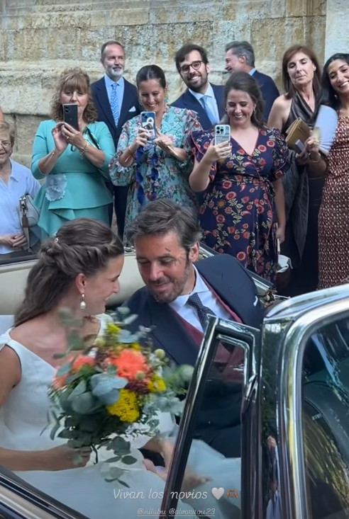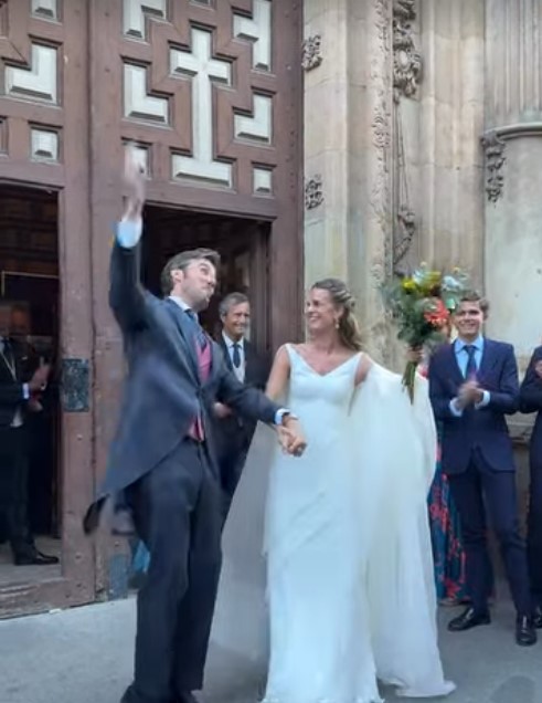 La novia eligió para uno de los días más importantes de su vida un vestido romántico, con escote de pico, recordaba al que lució Carolyn Bessette en su boda con John John Kennedy. Al igual que ella también lució chal de tul y un ramo de flores, en el caso de María Villuenda con más color que la nuera de Jacqueline Kennedy. Por su parte, el novio se decantó por un clásico chaqué oscuro.