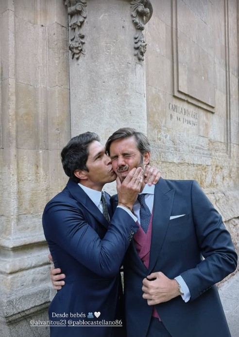 Las dos hermanas han compartido en sus stories imágenes de ellas y de la boda. También lo ha hecho Pablo Castellano, que felicita al novio con un beso en la mejilla y escribe: «Desde bebés».