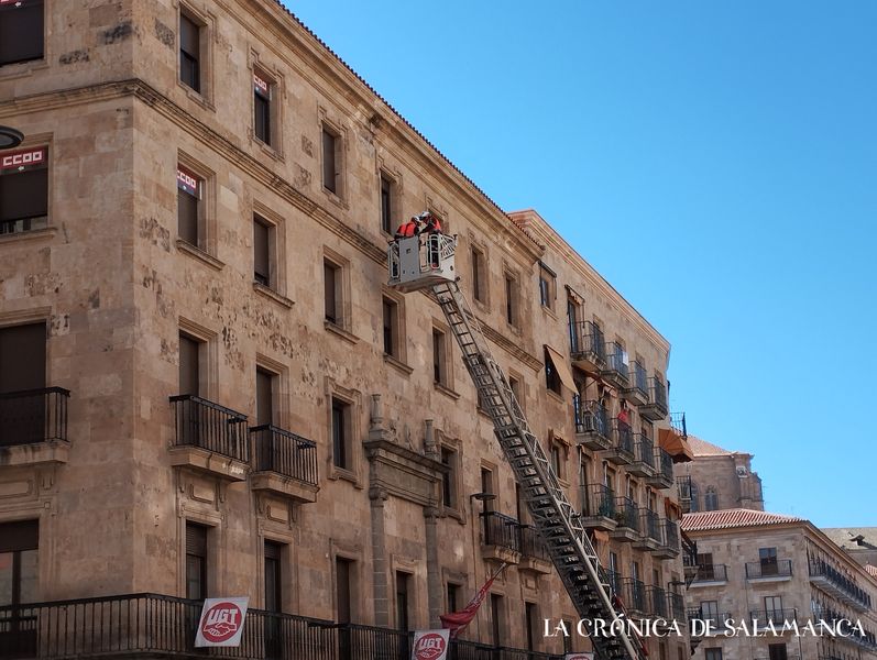 El aviso se produjo poco antes de las doce de la mañana, debido al riesgo de caída de cascotes de una cornisa del edificio de los sindicatos.