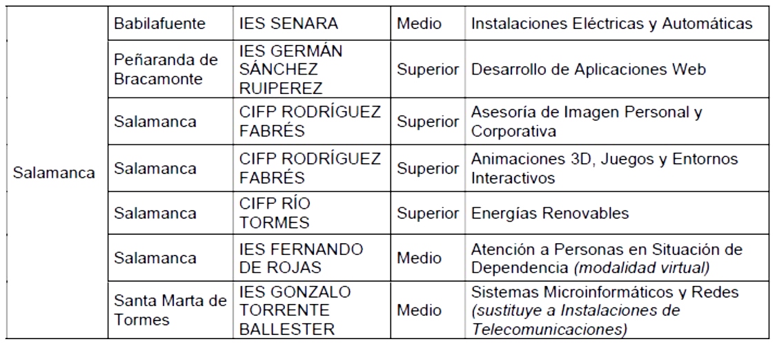 De igual modo, continúan los cursos de especialización de Formación Profesional que ya se impartían en los centros de Salamanca:
