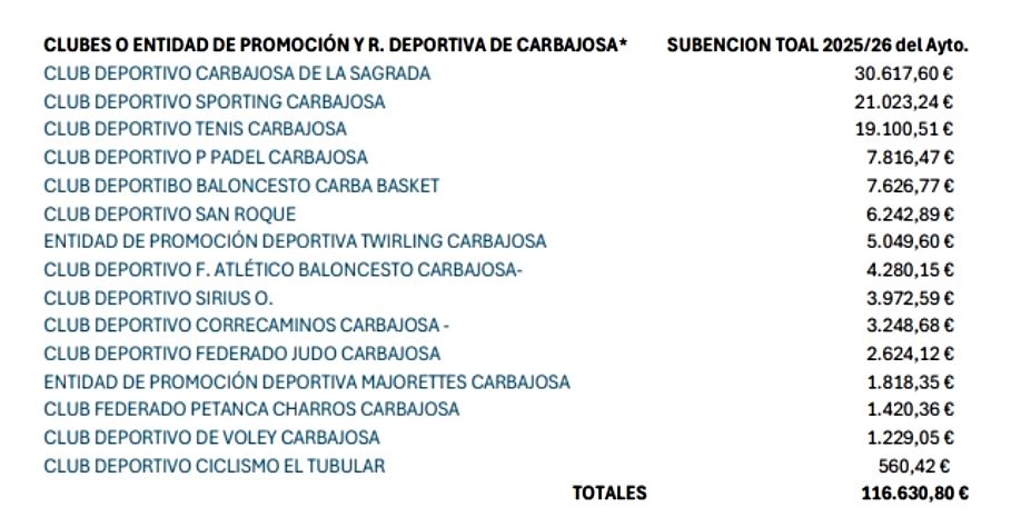 “Este modelo consolida al Ayuntamiento de Carbajosa como uno de los más involucrados con sus entidades y clubes deportivos, y refuerza su compromiso con la equidad, siempre teniendo en cuenta la dificultad que supone satisfacer toda la demanda debido al creciente número de clubes y usuarios”, por lo que desde el Ayuntamiento “se pide cierta comprensión al respecto”.