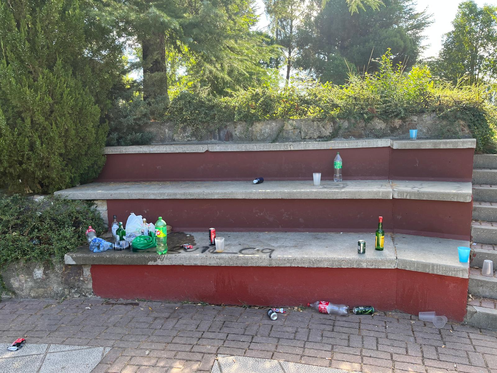Domingo sí y domingo también (incluidos algunos festivos) los caminantes que se adentran en el parque de los Jesuitas se encuentran con botellas, envases, bolsas… todos los ‘ingredientes’ ya vaciados de lo que viene siendo un botellón.