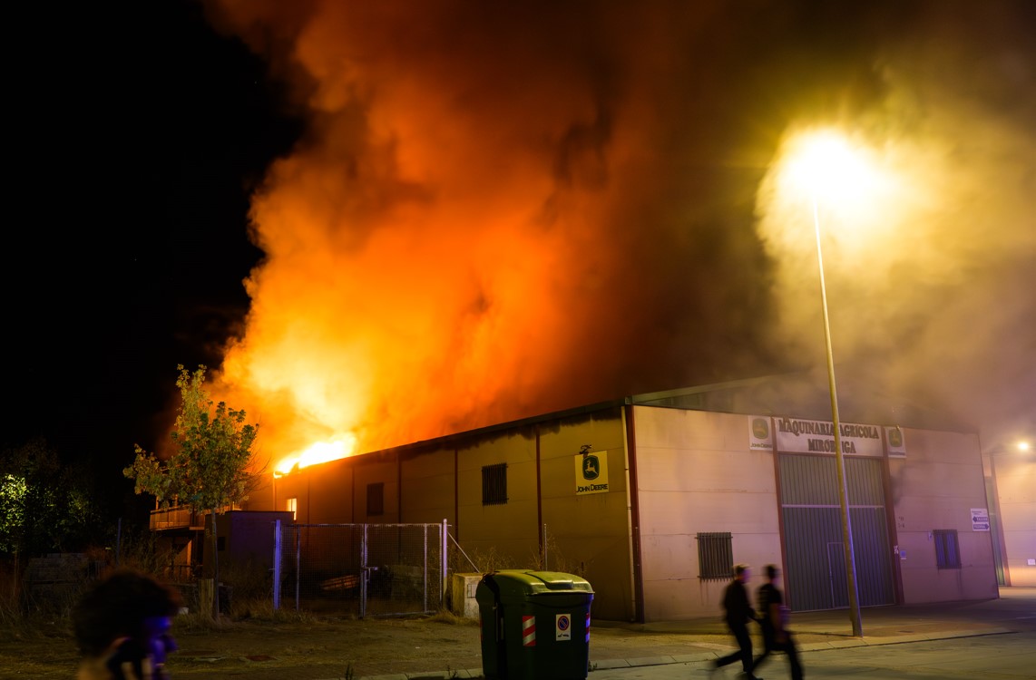 Un hombre de 40 años tuvo que se evacuado el martes por la noche a la UVI del Complejo Asistencial Universitario de Salamanca tras sufrir quemaduras e intoxicarse por la inhalación de humo en el incendio de una nave de vehículos agrícolas en Ciudad Rodrigo.
