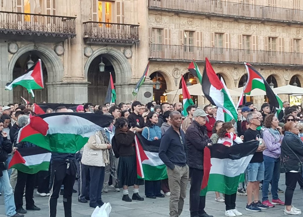 La Asamblea Internacionalista de Salamanca (Acampada por Palestina) organizó este miércoles una nueva concentración de protesta contra los ataques perpetrados el martes por la noche por parte de Israel contra la Global Summud Flotilla, que se dirige a Gaza para tratar de romper el bloqueo israelí que impide que la ayuda humanitaria llegue a la población gazatí.