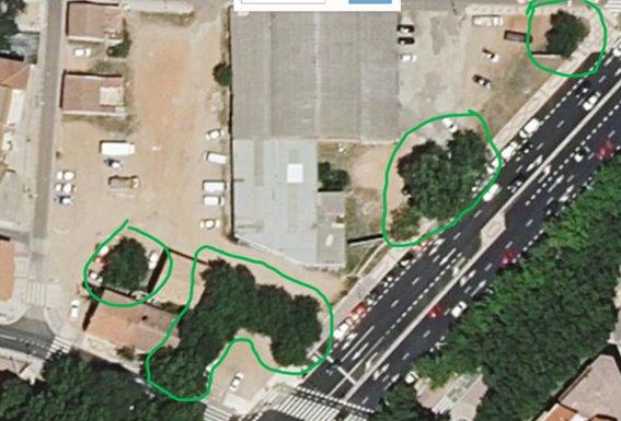 En la foto aérea están señalados los que se eliminarán. Desde la asociación Comité Antinuclear y Ecologista de Salamanca consideran que en el planeamiento tendría que haberse buscado la forma de integrarlos en la nueva parcelación, al menos los más grandes.