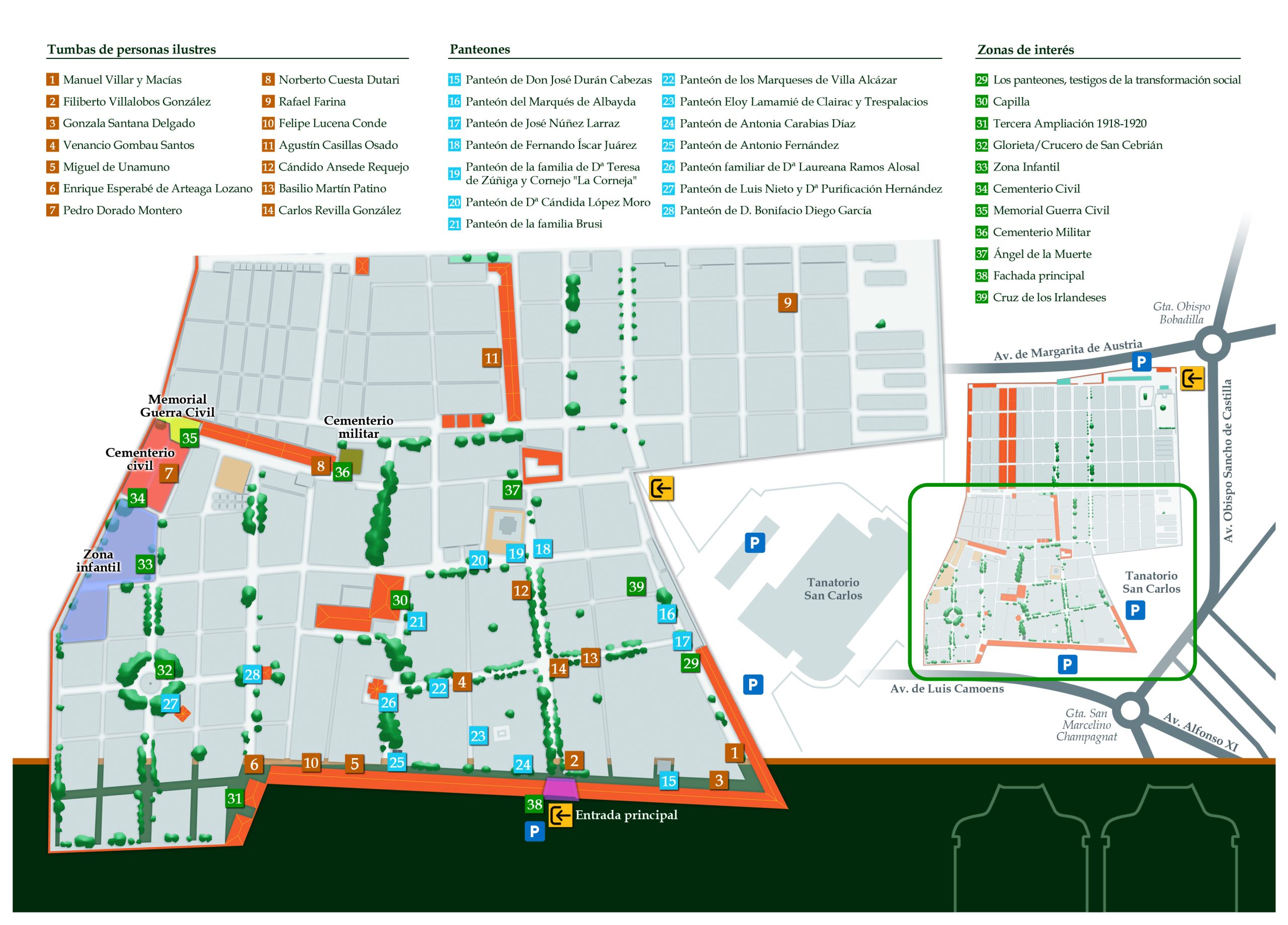 Se trata de “un paso natural y, al mismo tiempo, una obligación moral para una ciudad que atesora en su camposanto un compendio de memoria, arte y urbanismo”, explican desde el Ayuntamiento. El proyecto, coordinado por las áreas de Salud Pública y Turismo, incluye un plano turístico específico del recinto con la localización de los principales hitos, entre los que destacan tumbas de personajes ilustres, panteones de gran valor artístico y otros lugares destacados como la capilla, el crucero de San Cebrián, la cruz de los Irlandeses y el llamado Ángel de la Muerte. “Todos estos puntos han sido documentados con criterios históricos y patrimoniales para asegurar una visita didáctica y respetuosa”, destacan desde el Consistorio.