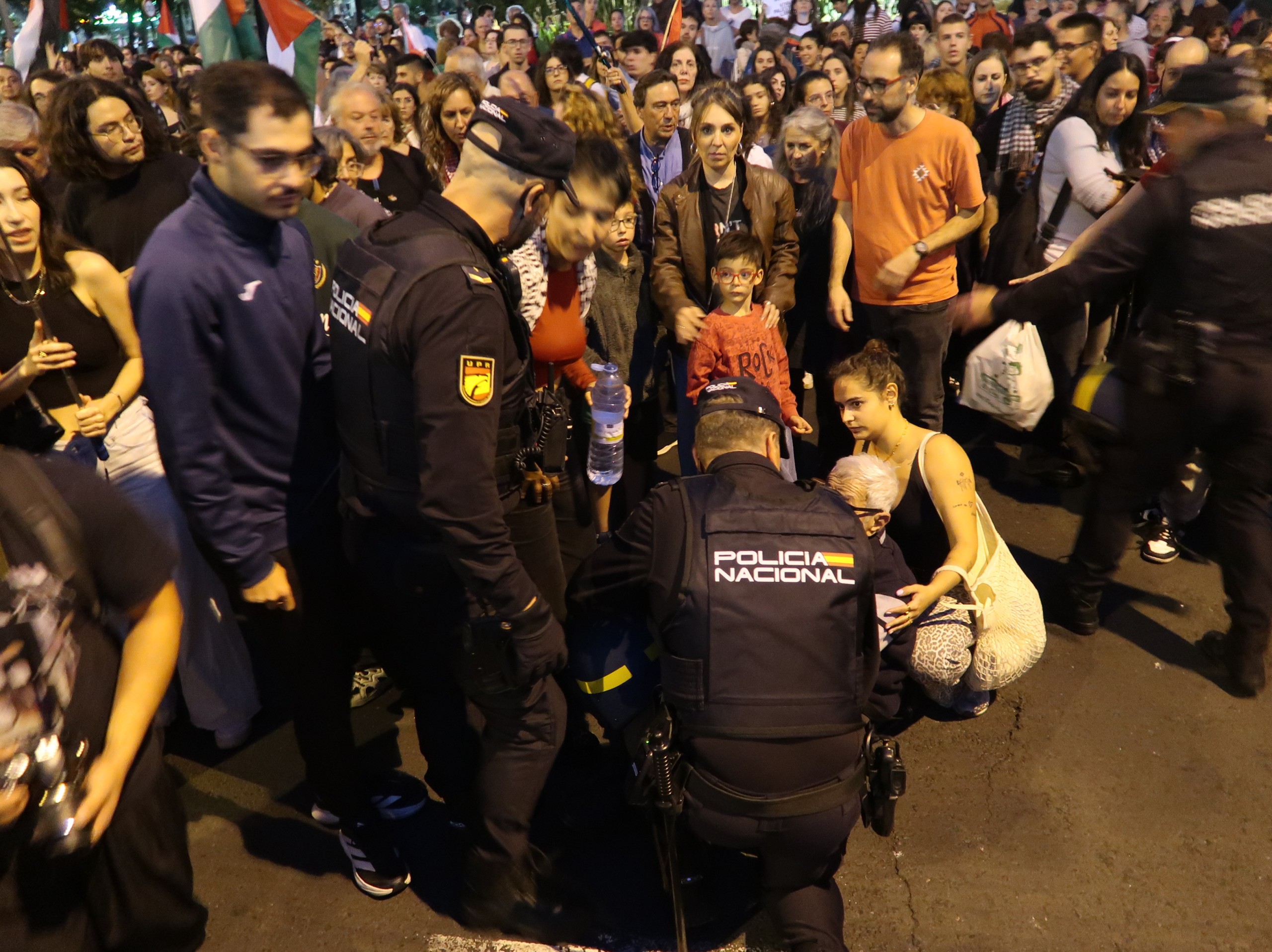 Varios policías nacionales auxiliaron a un hombre que sufrió un mareo durante la concentración a favor de Palestina que se vivió este jueves en Salamanca.