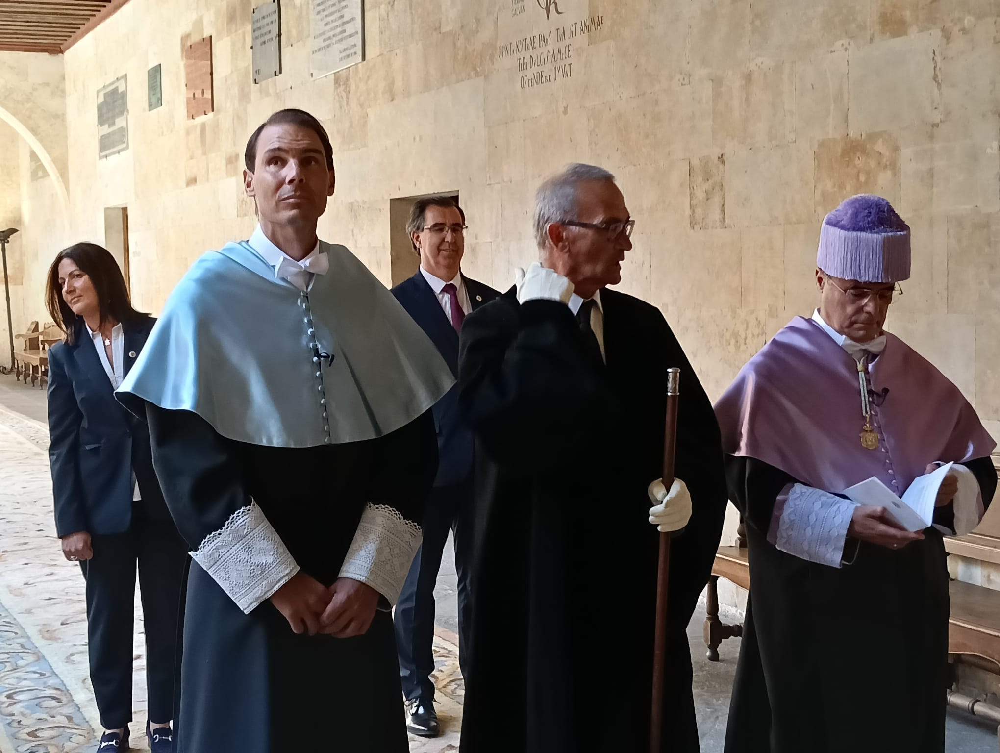 «El mejor español que hemos tenido en el mundo»; «Gran deportista y mejor persona»; «Rafa, rafa, rafa…». Así ha sido recibido Rafael Nadal, flamante Honoris Causa por la Universidad de Salamanca a su llegada al Patio de Escuelas.